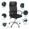 Cómoda silla acojinada con un toque vanguardista que ofrece calidez, su base en acabado cromo resalta el diseño de su respaldo en mesh y es recomendada para sala de juntas, oficinas privadas y casa.