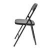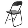 Silla metálica resistente con diseño plegable ideal para las reuniones en exteriores e interiores.