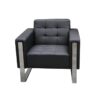 Patas metálicas con tratamiento inoxidable/Respaldo recto con diseño acojinado/Descansabrazos con ángulo/Vinipiel de 1mm de grosor